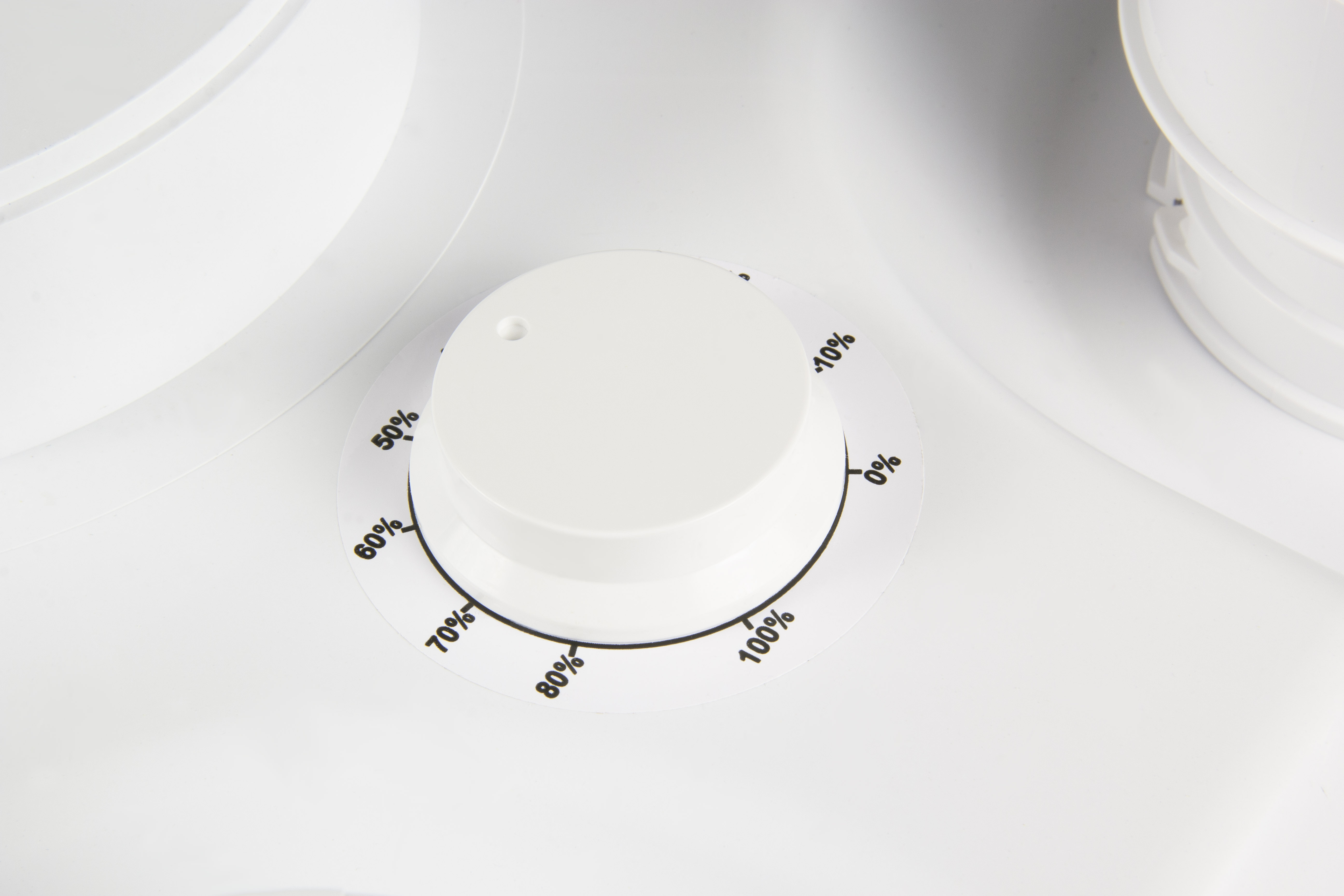 Czujnik wilgotności powietrza wykrywa wilgoć w zakresie 0% - 100% wilgotności względnej. Regulacje poziomu wilgotności należy wykonać przy pomocy pokrętła znajdującego się na frontowej części budowy wentylatora. Gdy w trakcie pracy wilgotność wzrośnie powyżej wartości ustawionej pokrętłem, wentylator automatycznie zwiększy prędkość obrotowa przełączając się na 2 bieg. Po spadku wilgotności poniżej ustawionej wentylator powróci do pracy na 1 biegu.