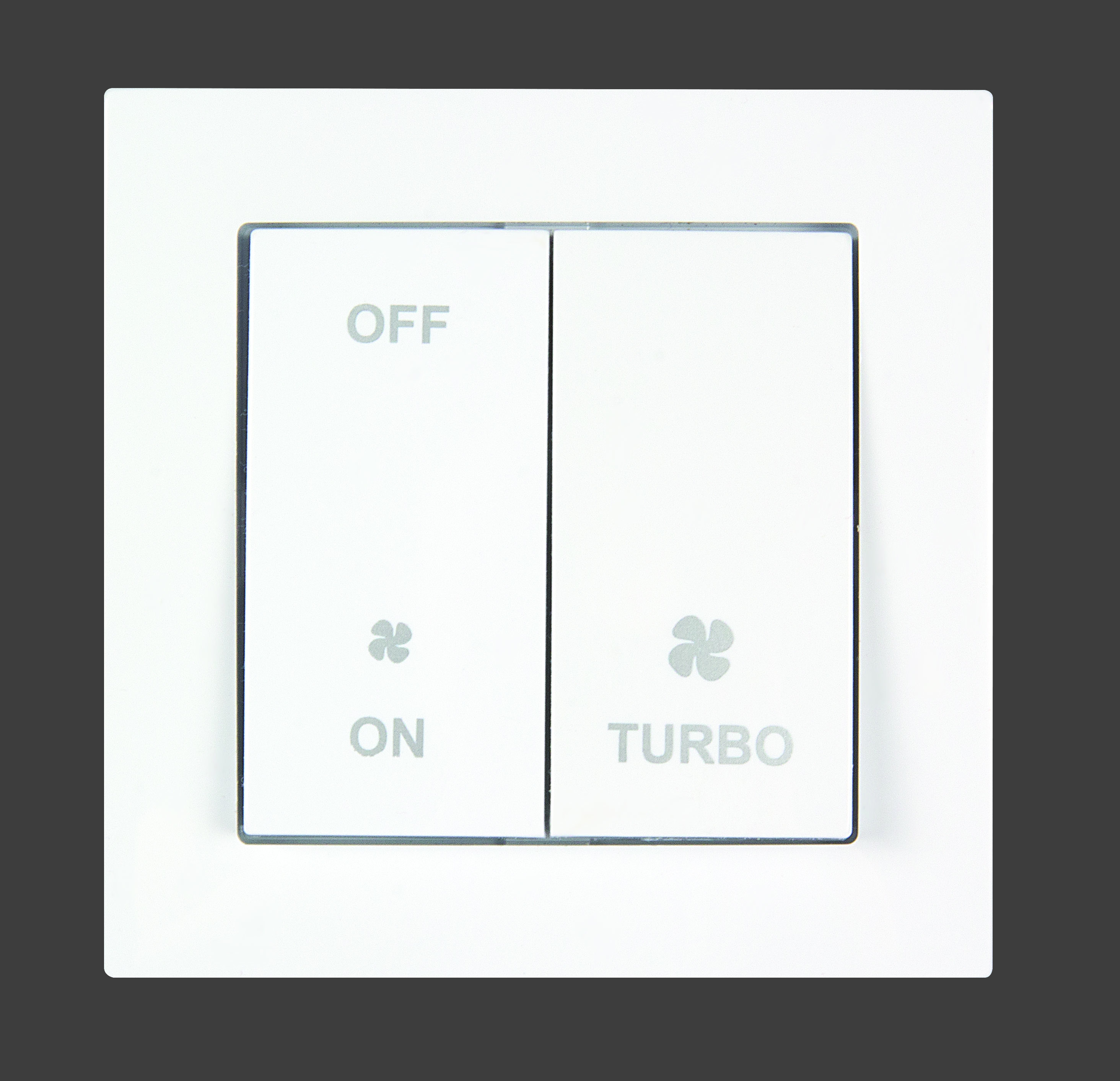 Dołączony włącznik ścieny (natynkowy/podtynkowy) za pomocą którego użytkownik steruje urządzeniem (zmiana prędkości pracy, włączanie i wyłączanie) można zamontować w dowolnym miejscu budynku.